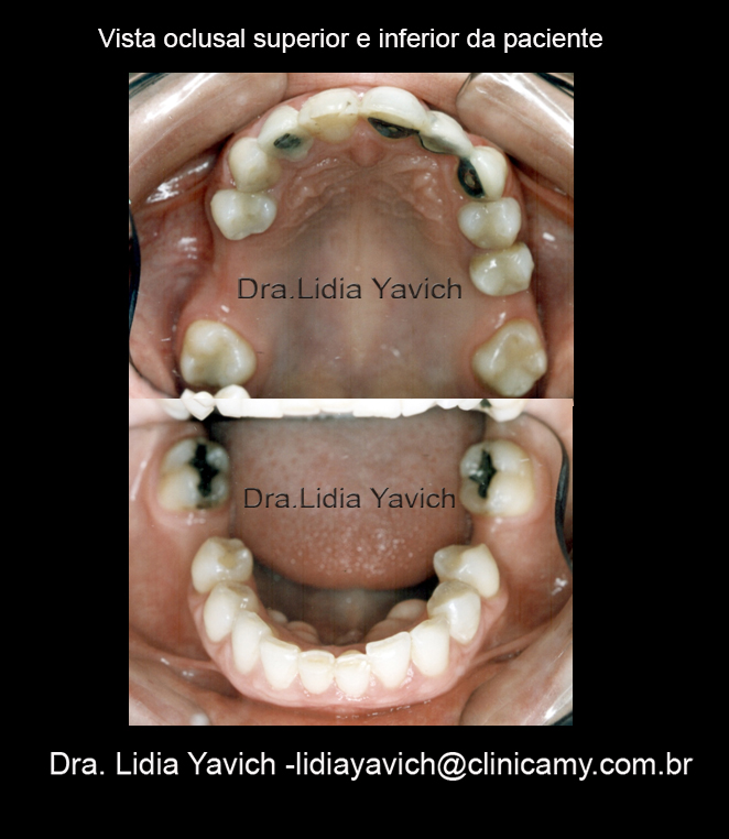 A paciente relata que mais o menos com quatorze anos teve “cistos nos maxilares” e foram retirados vários dentes. Começou a quebrar dentes frontais ao redor dos vinte anos de idade. FORAM FEITAS PROTESES, MAS A SENSAÇÃO ERA COMO QUE NADA SE ENCAIXAVA.