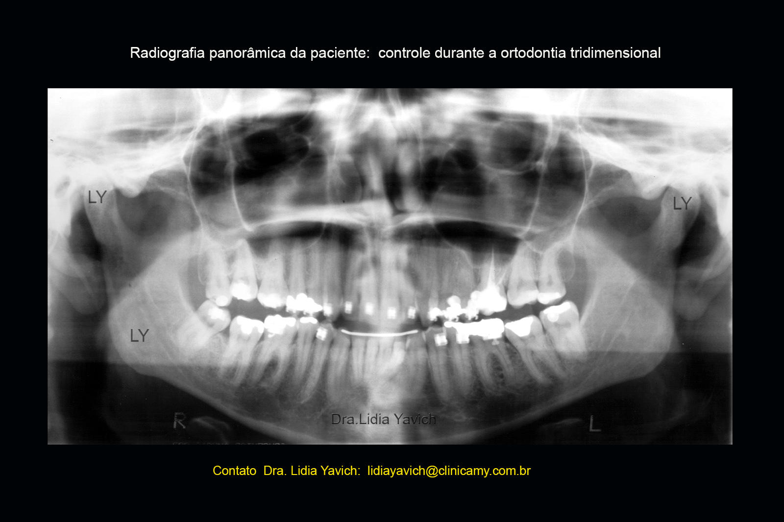 Radiografia panorâmica da paciente após a finalização da segunda fase, neste caso a ortodontia tridimensional.