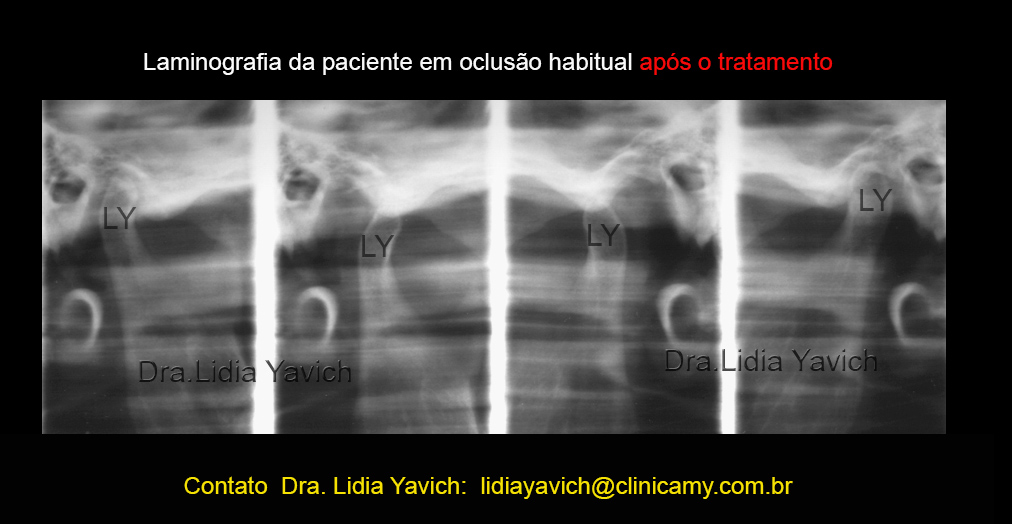 Laminografia da paciente em oclusão neuromuscular fisiológica na finalização do tratamento.