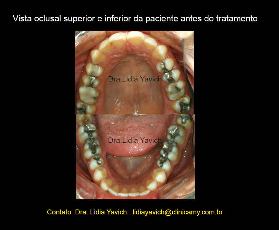 Posteriormente foi feito o alinhamento do setor incisivo superior e a restauração com resina da parte fraturada. Alinhamento do setor incisivo inferior e finalização da ortodontia tridimensional após o tratamento da ATM.