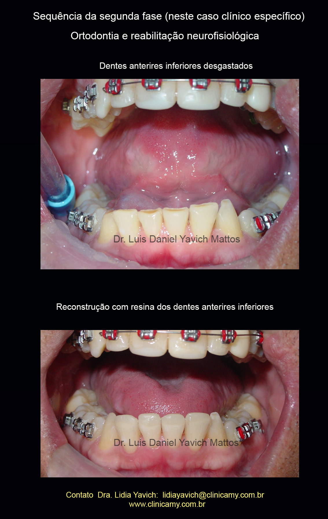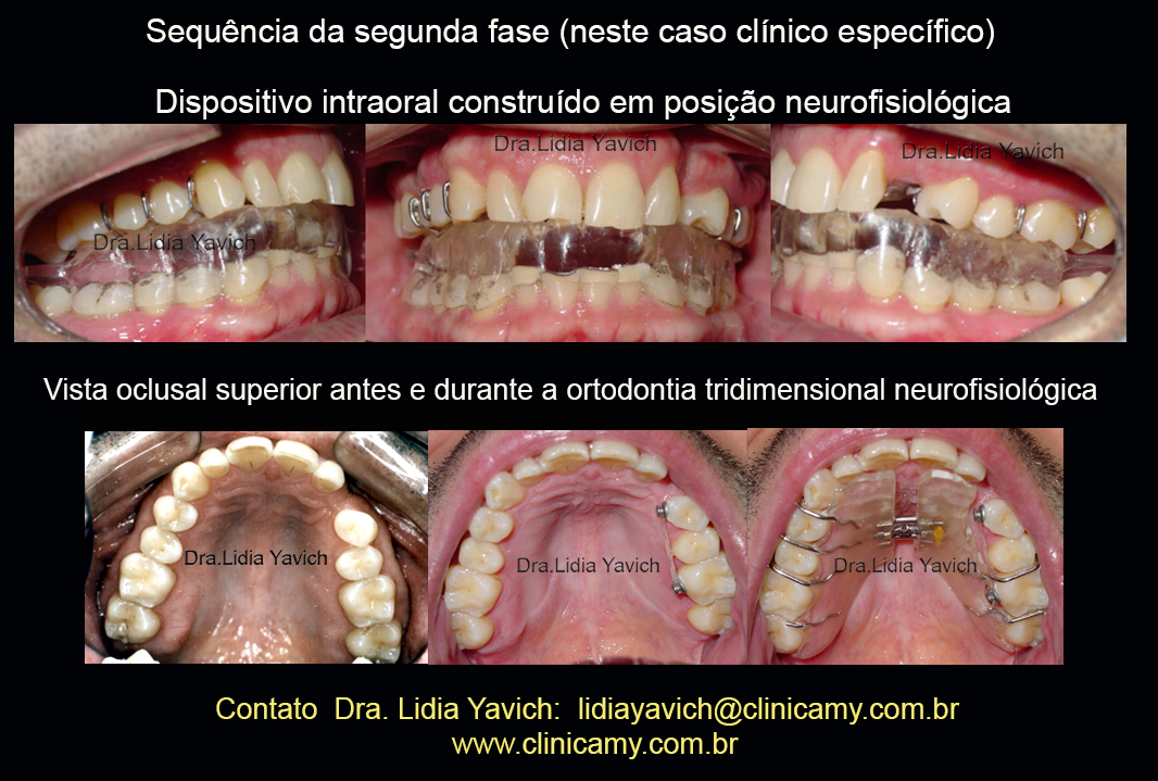 Mesmo que estruturalmente os côndilos mandibulares tenham sofrido mudança do eixo de crescimento devido a traumatismo na primeira infância, eles não apresentavam lesões que impedissem, após a melhora da localização tridimensional da mandíbula, iniciar a SEGUNDA FASE DO TRATAMENTO.
