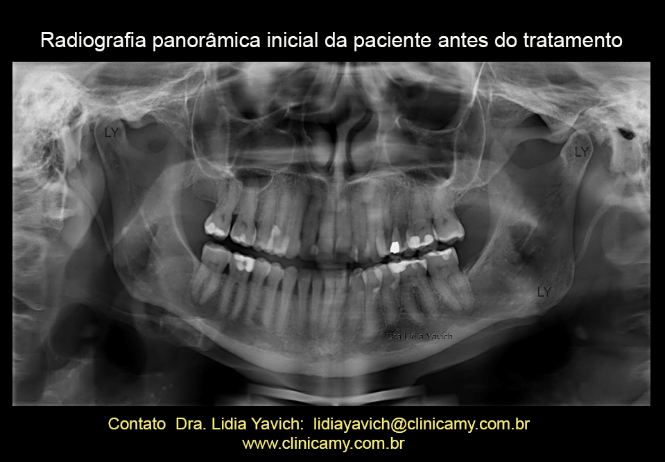Radiografia panorâmica inicial da paciente no inicio do tratamento.