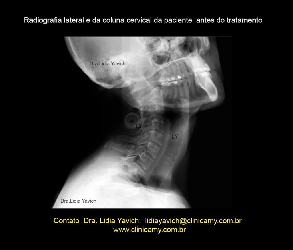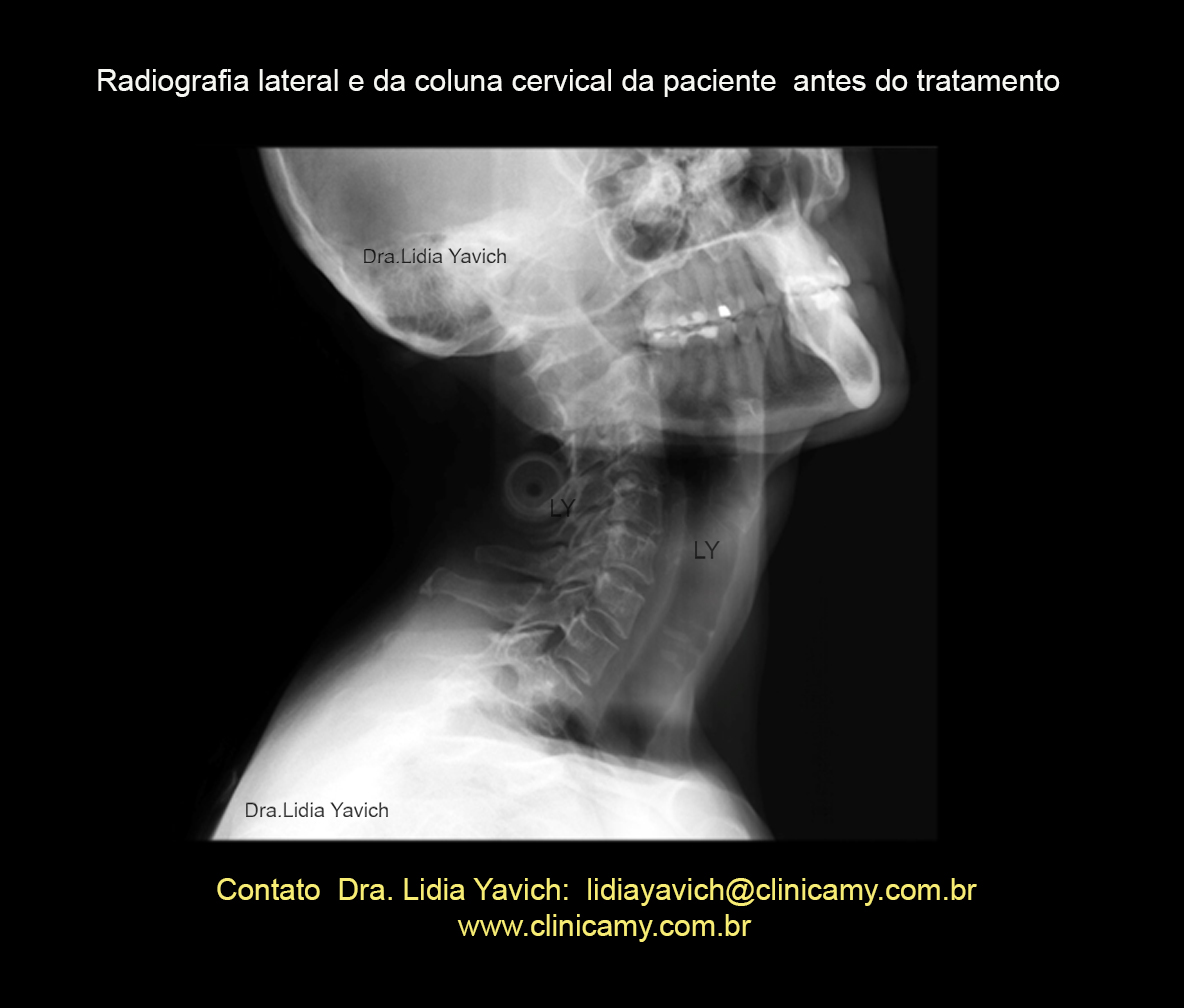 Radiografia lateral e da coluna cervical da paciente antes do tratamento.