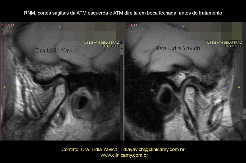 Um corte da RNM em oclusão habitual da paciente antes do tratamento.