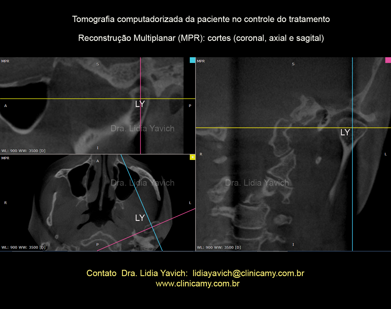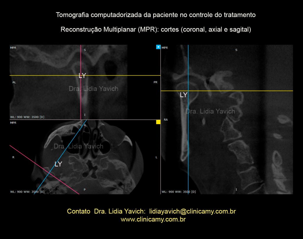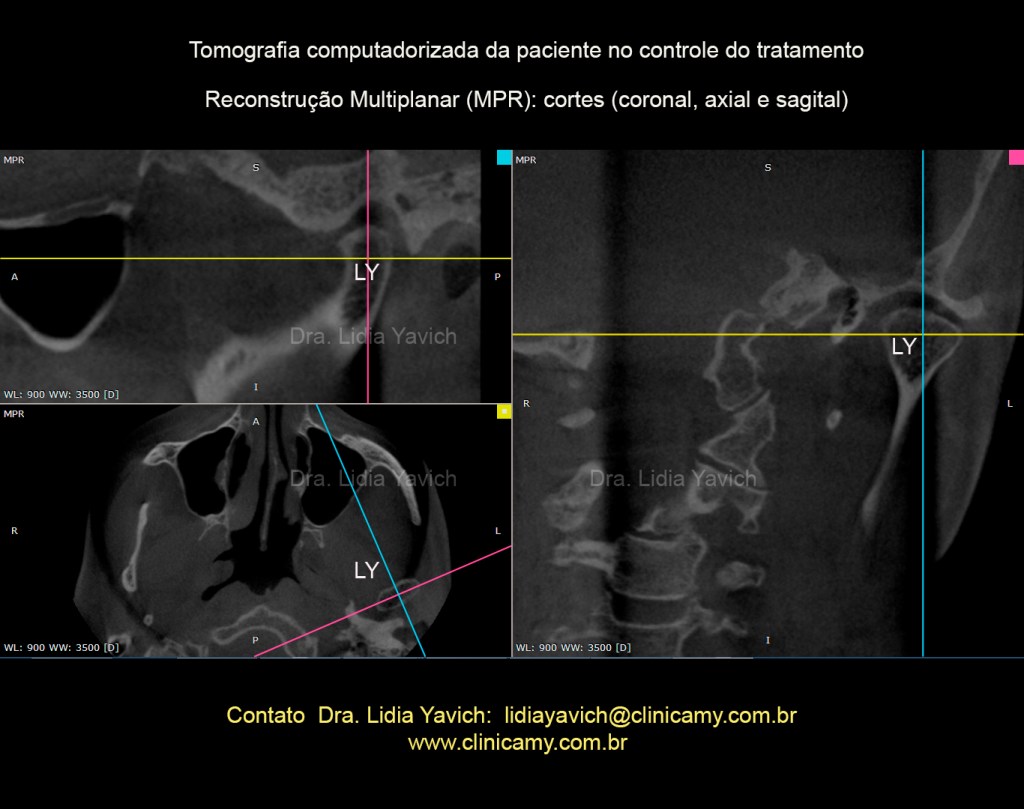 Tomografia computadorizada da paciente no controle do tratamento. Reconstrução multiplanar.