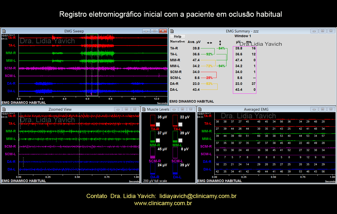 Registro eletromiográfico inicial com a paciente em oclusão habitual.